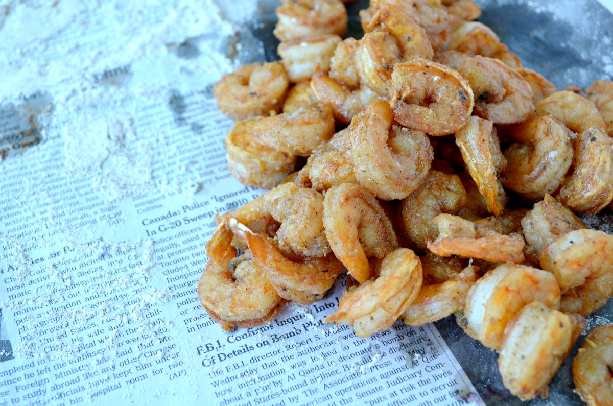 The first time I made these fried shrimp I was cooking them in the galley of a boat in the Caribbean. Many of these tiny islands lack fresh produce, so I served the shrimp in warm corn tortillas with smashed avocado, sour cream and a squeeze of lime. The Chinese Five-Spice is so flavorful, it didn’t need much more – though I would have added halved cherry tomatoes if I’d had them.