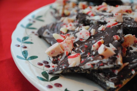 Last summer when my assistant Kirsty of The Good Taste Guide introduced me to Salted Toffee Chocolate Bars—butter and brown sugar baked onto saltines and topped with chocolate and Heath Bar Bits—I couldn’t wait until the holidays to apply this technique to peppermint bark. And it’s a winner too.
