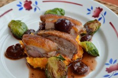 Crispy Duck Breasts with Balsamic-Cherry Sauce, Roasted Brussels Sprouts, Parsnip-Carrot Puree 16 Feb 2013