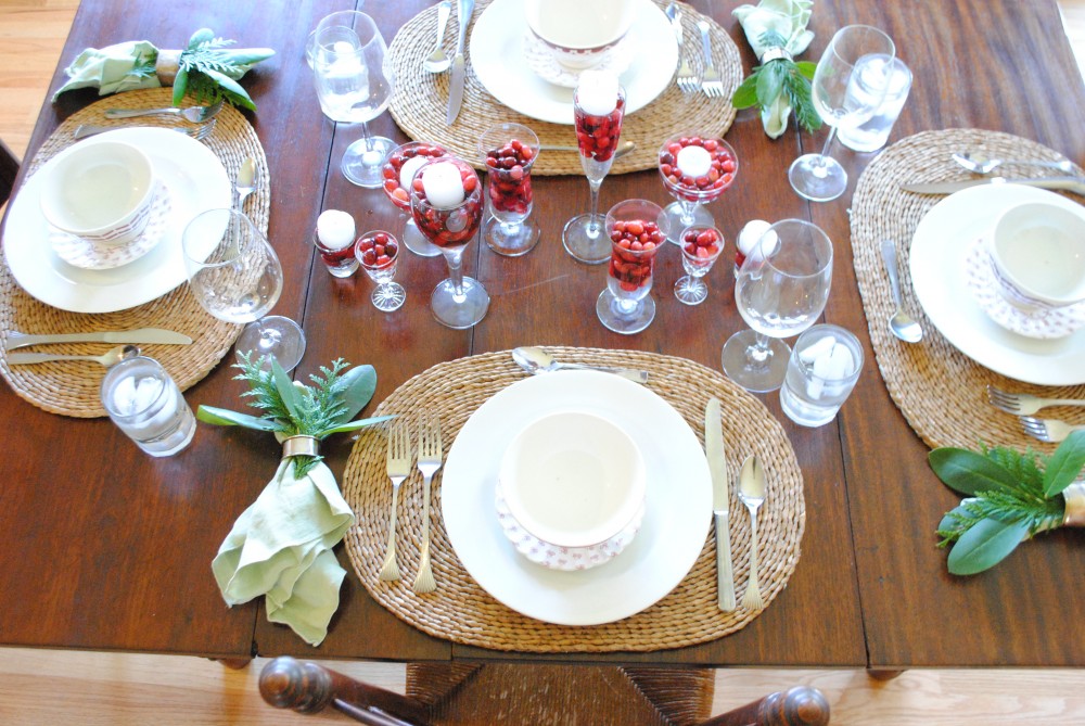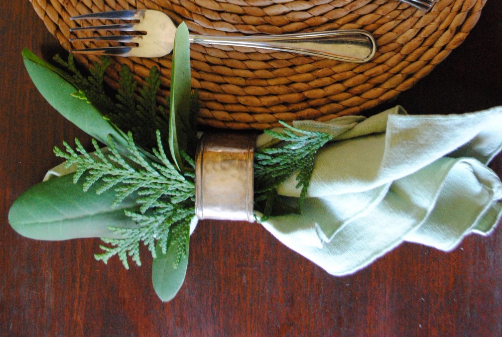 Note from Pam: Sharon sent me her Christmas Eve sermon for preaching class at seminary. The story moved me so that I asked if we could post it here. She reluctantly agreed and wanted you all to know that the inspiration for it came from Luanne Panarotti. After reading Sharon’s sermon my assistant, Kirsty Hughan of The Good Taste Guide and I almost drove up to New Haven to make a beautiful table with her Ikea china, mismatched silverware and greens from around her apartment. Instead, we recreated a table here based on what the average person might have around. We bought nothing. Here’s proof you don’t need a glue gun, epsom salt, and spray paint to make a welcoming holiday table.