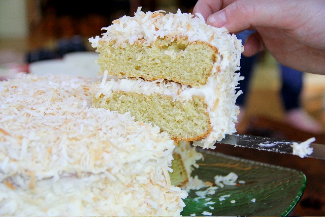 I learned to love coconut cake from my southern Granny and Papa. Sweet, fluffy, and white, their cakes were always so beautiful sitting on the Formica counter. As much as I love the traditional recipe, I always wanted more of that rich yet subtle coconut flavor. In honor of my Granny’s birthday tomorrow, I’ve developed a new recipe featuring coconut exactly where it belongs: in the cake, in the frosting, and, of course, on top!