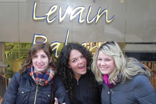 In the past five days, we’ve had cocktails and sushi, mani/pedis. We’ve watched two romantic comedies (Going the Distance and Love and Other Drugs) and the Oscars, read gossip magazines, had lunch at The Plaza. We’ve gone sightseeing and shopping (followed by shopping and more shopping). But I knew that before the girls left, I wanted to take them to Levain Bakery, reputed to have the best cookies in New York City. So this afternoon we went with a few other friends.