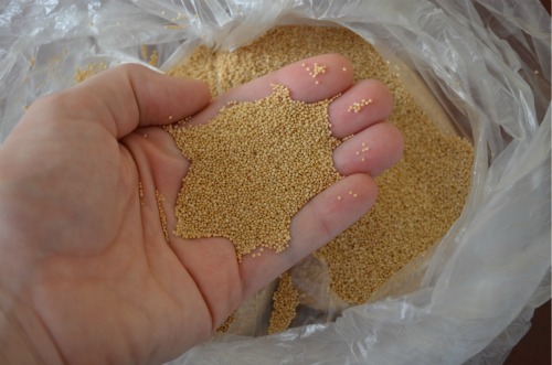 After working with it a bit, I realized that amaranth would make a great hot cereal (and also a great way to get protein in the morning without eating meat). When I cooked the amaranth, it was somewhat sticky and thick, so I added some soy milk to thin it out (you could use regular milk too). It worked like a charm. If you mix in anywhere from a half cup to one cup of soy milk, the amaranth takes on the consistency of cream of wheat. And it’s delicious. The flavor is nutty and earthy and the texture is a bit more interesting than oatmeal.