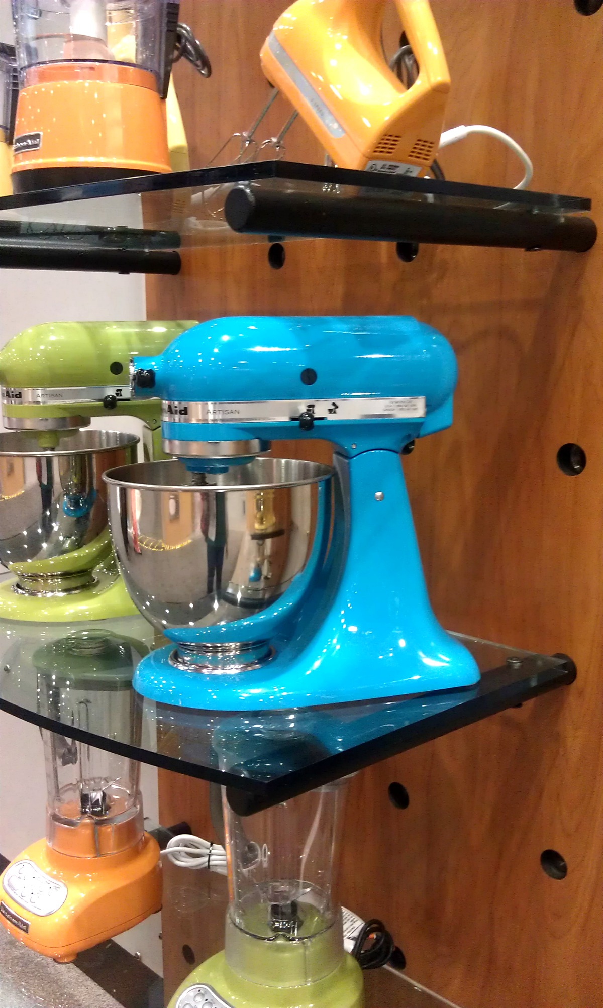 Of course we had to stop by and see our friends at KitchenAid who had some fantastic new appliances and these fun new colors: crystal blue, tangerine, green apple, and majestic yellow.