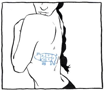 We started our Saturday with brunch at Café D’Alsace, our regular weekend brunch spot just around the corner. Andy and I split French Onion Soup (I can hardly go there without ordering it) and German Berry Pancakes. Amanda has a frisée salad with a (perfectly) poached egg and lardons. One thing about Amanda: the girl loves bacon or anything that comes from a pig (so much so that she has an old butcher’s diagram of a pig tattooed on her side).