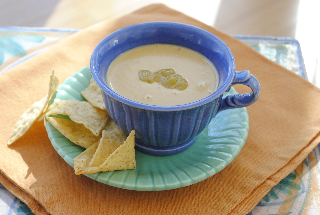 Recipe by Three Many Cooks at https://threemanycooks.com/recipes/strictly-vegetarian/creamy-beer-cheese-soup-with-salsa-verde-2/
