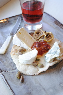 Transfer to a large parchment- or silpat-lined rimless cookie sheet. (All 6 flatbreads should fit crosswise on the same sheet.) Bake until brown and crisp, 8 to 10 minutes. Cool to room temperature (Can be stored in an airtight container a week or more.) Arrange cheese and fruit as desired and serve.