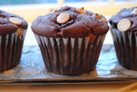 Chocolate Muffins with White Chocolate and Dried Cherries