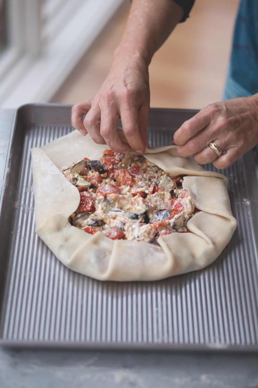 I checked the pre-party pie list and the bulk of offerings were sweet. Since the party started at noon, I took a savory turn making one of the vegetable galettes from Cook Without a Book: Meatless Meals.