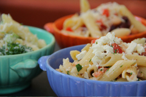 Pasta, tomatoes white beans & olives. Took Sunday to a large outdoors family gathering. Tripled the recipe. Finished mixing (cooled pasta then mixed other goodies) at 10:30am didn’t get served until about 2:00pm (kept it in a box with ice packs) Everyone LOVED it. Thanks for a really good recipe. PKH