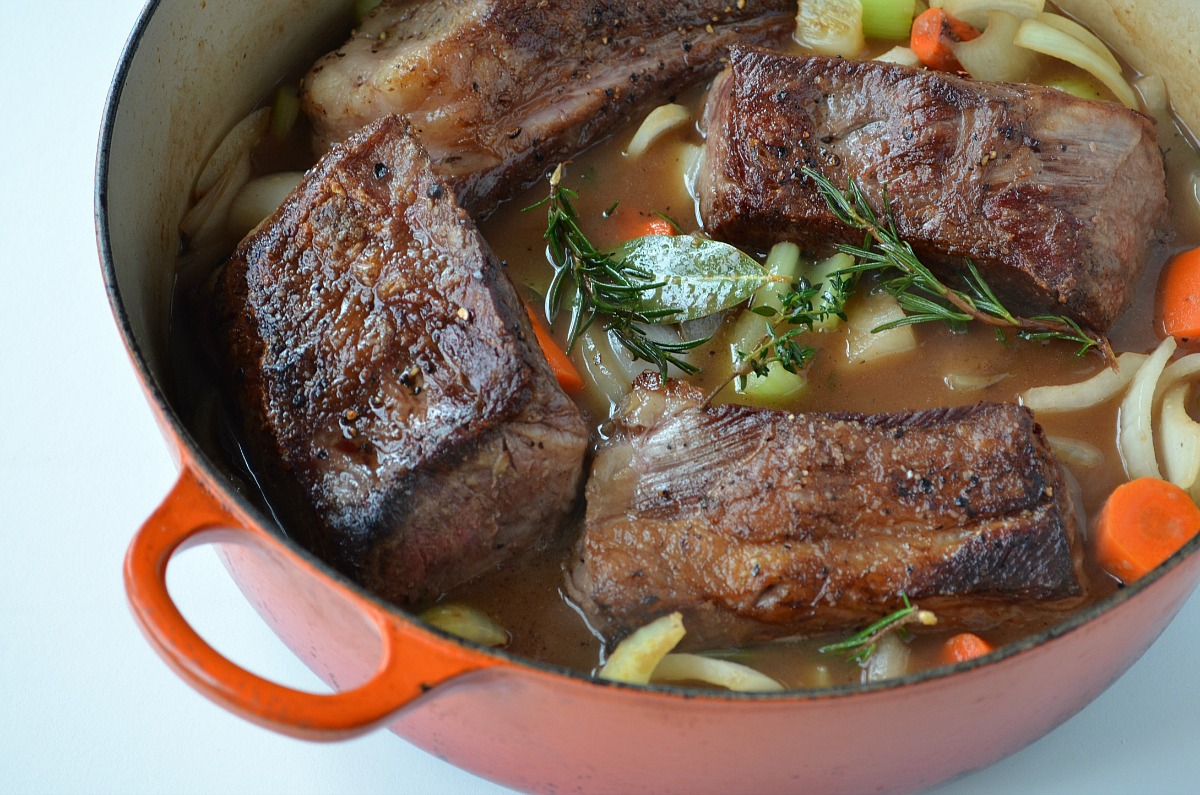 This is not a recipe I would have thought of making, but that’s what’s fun about going to someone else’s house for dinner, eh? What I love about this recipe is that the short ribs serve two purposes. You enjoy them for dinner one night and there’s leftover meat for appetizers at an impromptu (or planned) party.