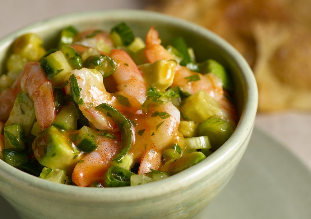 In the meantime, I’m sharing Shrimp Ceviche Dip, a recipe that ran in Perfect One Dish Dinners back in 2010. Now that football season is in full bloom, I decided it was time to share with you. This dip has been one of my favorites, and I think you’ll love it too because it’s guacamole meets shrimp cocktail–a winning combination.