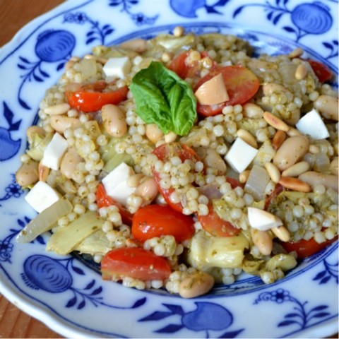 Israeli Couscous with Pesto, Tomatoes, and White Beans