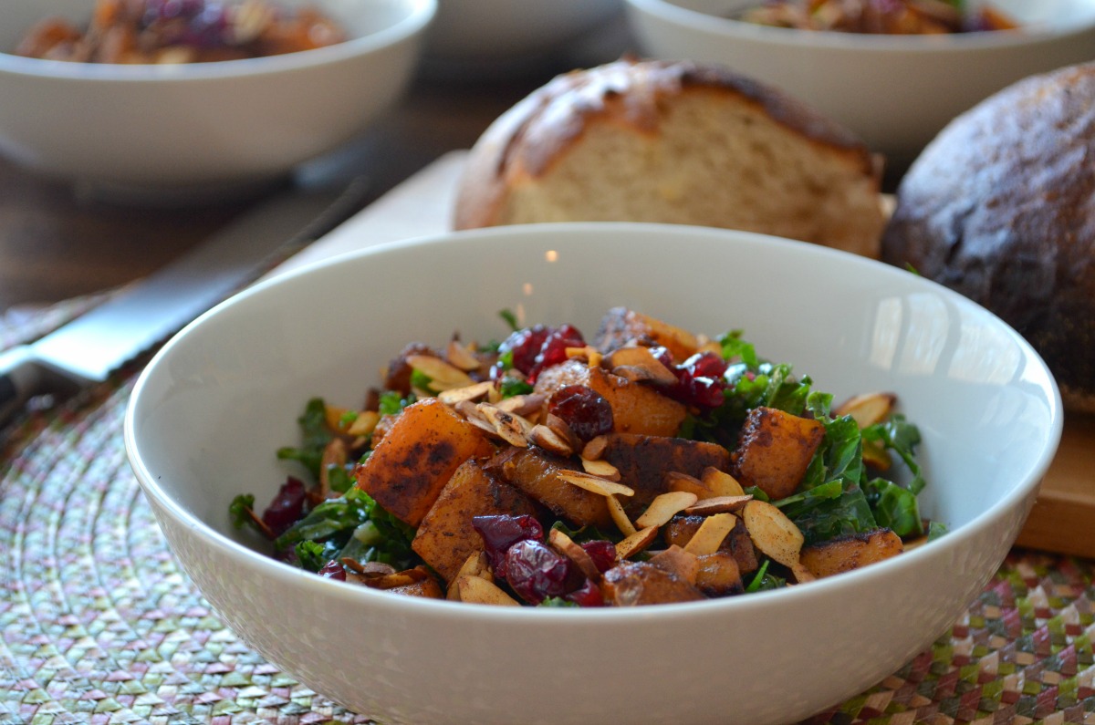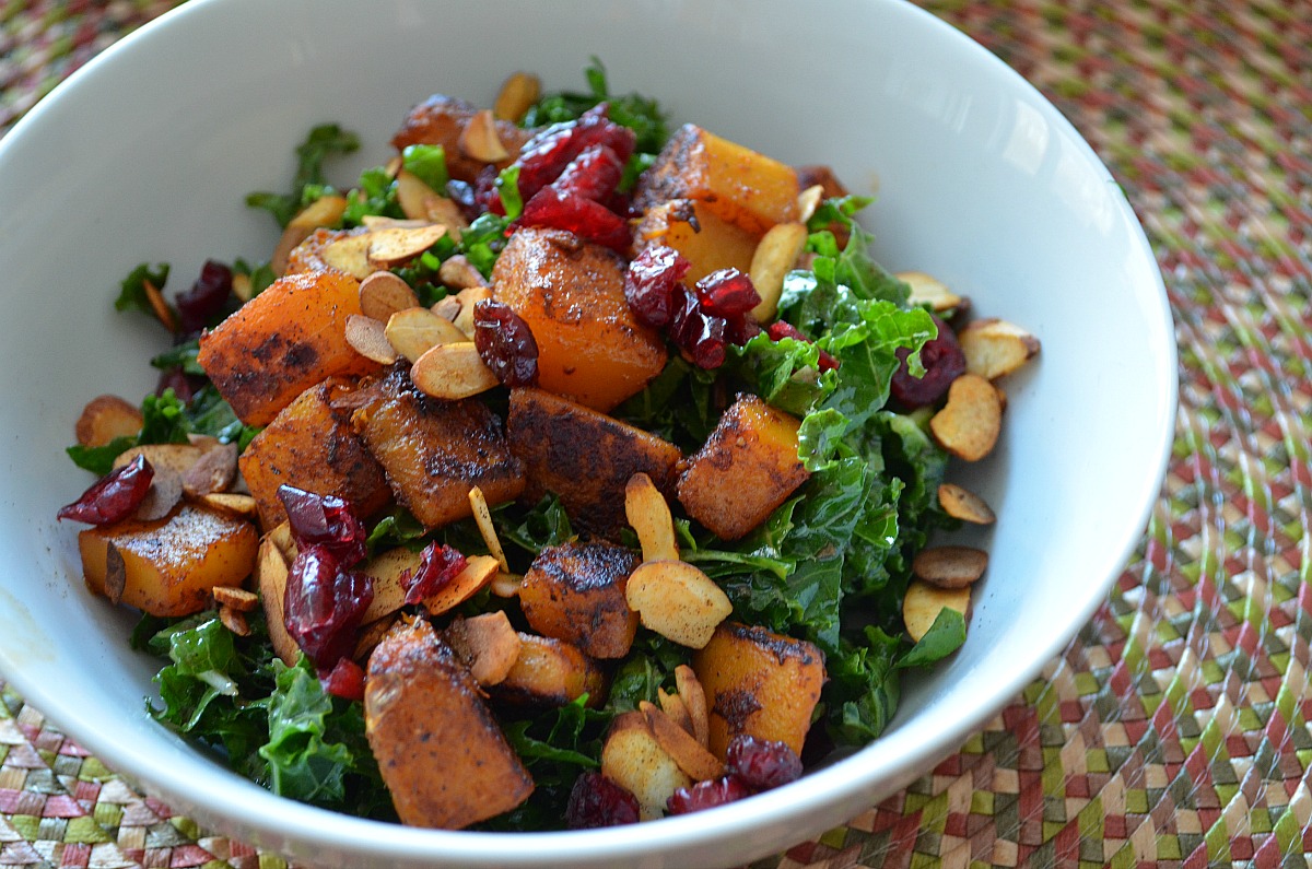 This recipe (like most of my recipes) is just a guide. If you hate kale or are so sick of hearing about it that you just might scream, then use a different green. Anthony and I have made this salad with thinly sliced collards. We’ve also made it with a combination of spinach, arugula, and mustard greens. When we don’t have squash around we make it with sweet potatoes and it’s just as delicious. And if you can’t find pepitas, then sliced almonds make a nice substitute (that’s what Mom used when she took this photo!), but really any nut will do.