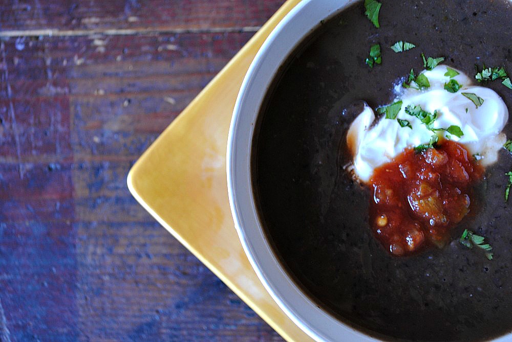 So next time you go to the grocery store to stock up for the holidays, remember to pick up a few cans of black beans, a few jars of salsa, and a couple of cartons of broth, so that next time you don’t think you have time to eat well, you realize it’s just a matter of opening a can, a jar, and a carton!