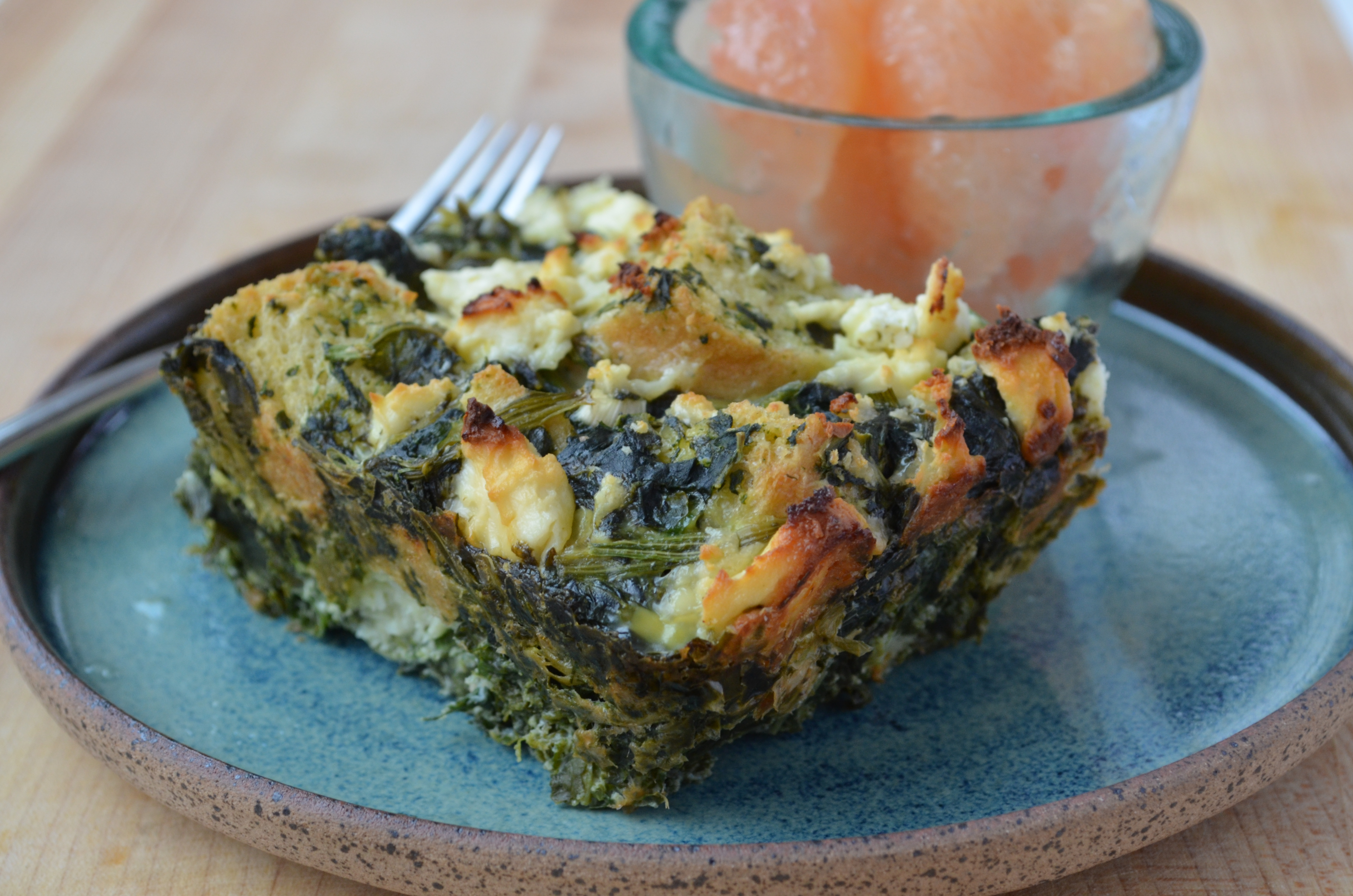 I really loved this strata when we had it weekend before last. It may still have half and half in it, but it certainly feels like a healthier version with all the spinach and feta (instead of a higher fat cheese)!