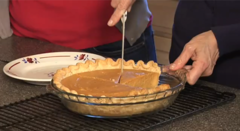 - Pour warm filling into warm pie shell. Bake until a thin-bladed knife inserted into the center of the filling comes out clean, 30 to 40 minutes. Let cool on a wire rack until warm or room temperature. Serve.